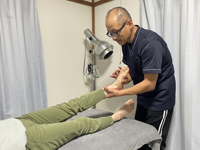 腰痛・座骨神経痛・痺れがある場合、足首を動かして特殊な刺激を入れ